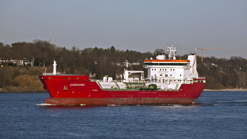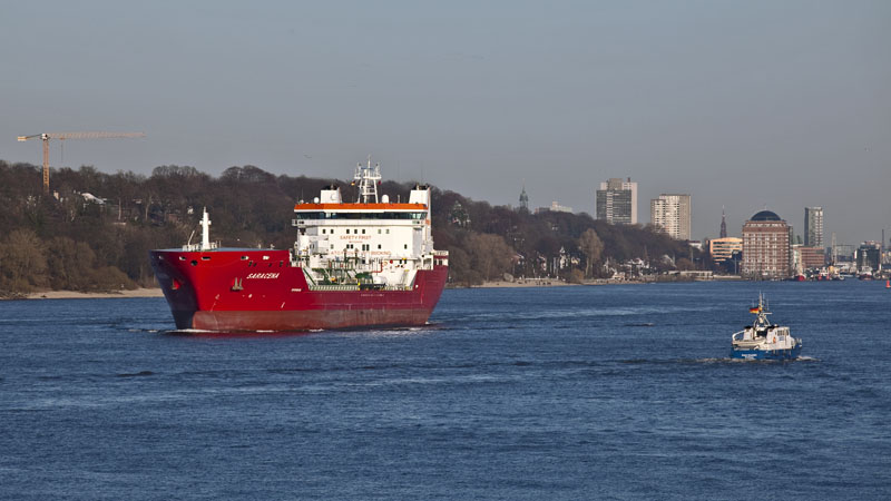 | Ein küstentauglicher Flüssiggastanker, die SARACENA Hamburg-Finkenwerder, 8. März 2011 |