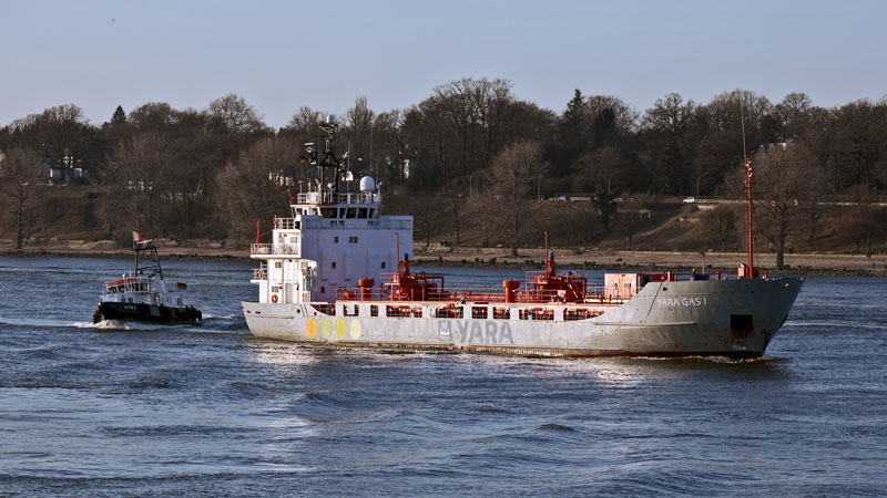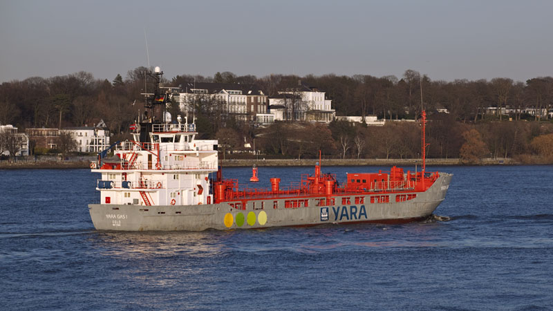 | Die YARA GAS I im warmen Abendlicht. Hamburg-Finkenwerder, 8. März 2011 |