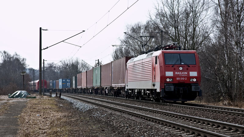 Einfahrender Containerzug mit der 189 010-2, speziell für den Tschechien-Verkehr. |