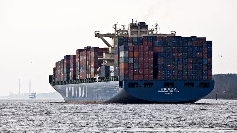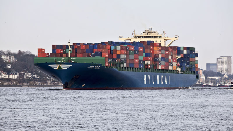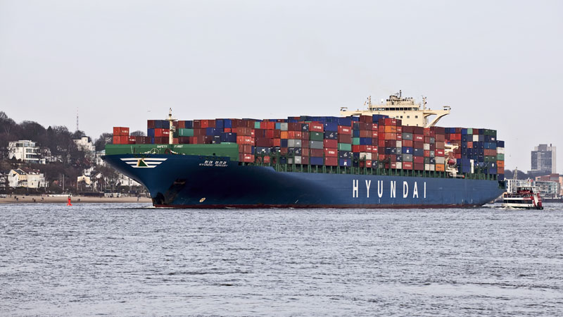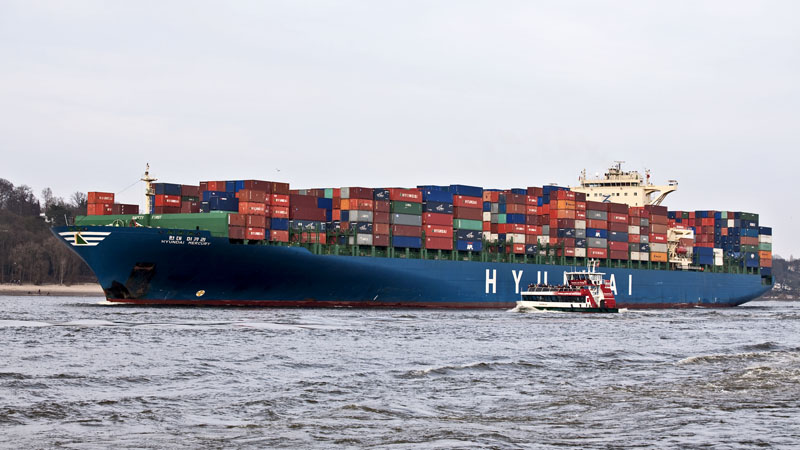 | Die HYUNDAI MERCURY – 340 m lang, 46 m breit und schafft 8.562 TEU. Hamburg-Waltershof, 12. März 2011 |
