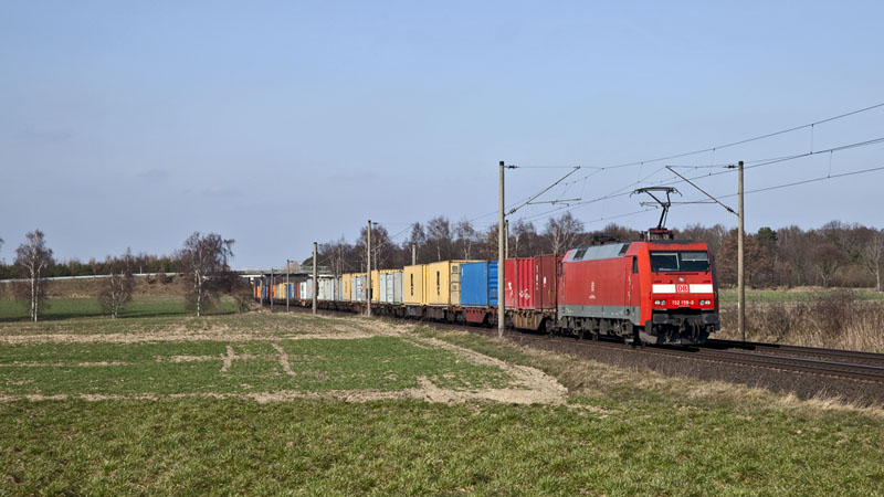 | Auch die 152 159-0 hatte ne Menge Container aus Hamburg wegzufahren. Marxen, 29. März 2011 |