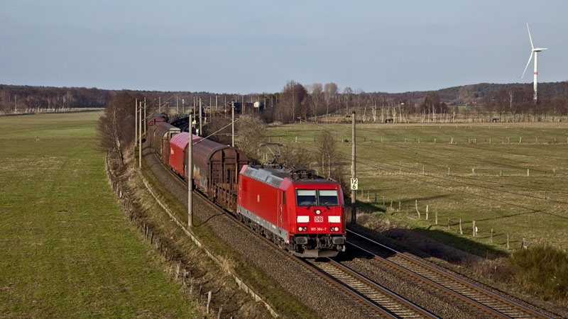 | Mit einem gemischten Güterzug von Maschen kam die 185 364-7. Ramelsloh, 29. März 2011 |