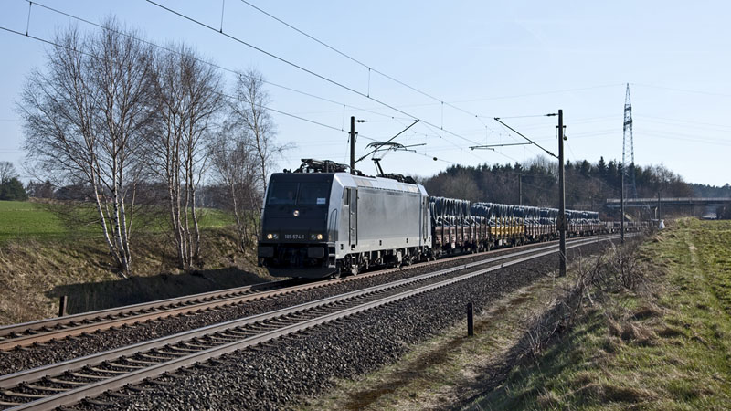 | Einen Stahldrahtrollenzug brachte die 185 574-1 der CFL Cargo nach Hamburg. Marxen, 29. März 2011 |