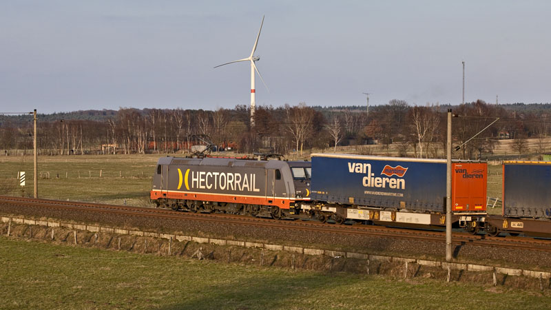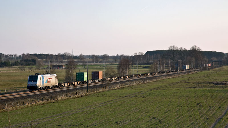 | Auch die 185 151-8 sah relativ sauber aus, als sie einen Containerzug aus dem Hamburger Hafen brachte. Ramelsloh, 29. März 2011 |