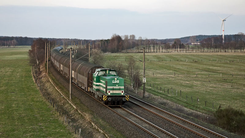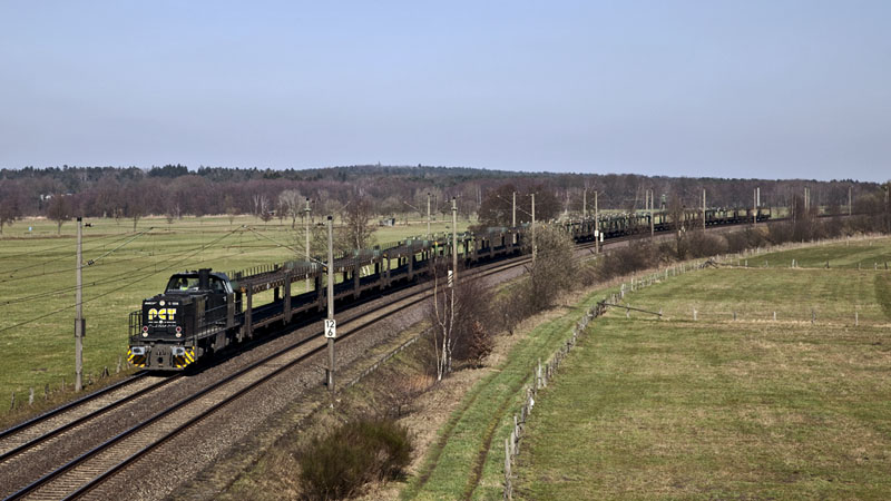 | Auch die 293 501-3 "Grüne Rose" der LDS kam mit dem PCT Altmann-Autologistikzug von Cuxhaven. Ramelsloh, 29. März 2011 |