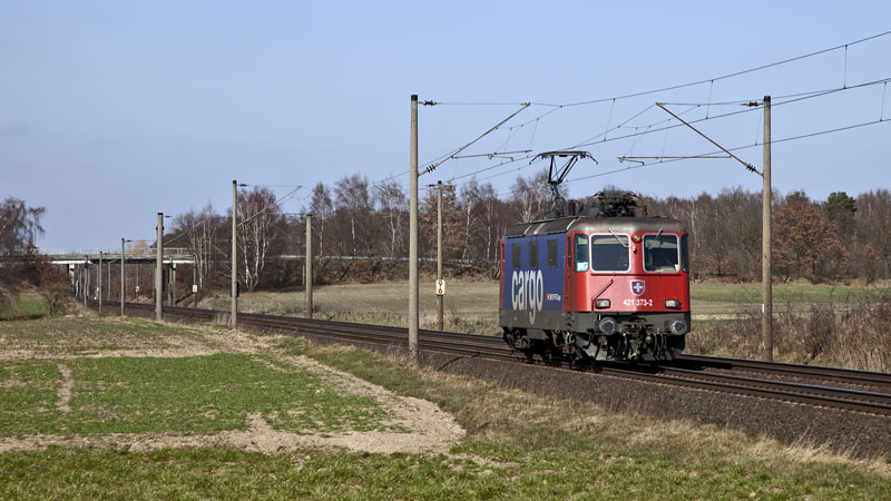 | Lz kachelte die 421 373-2 der SBB Cargo gen Westen. Marxen, 29. März 2011 |