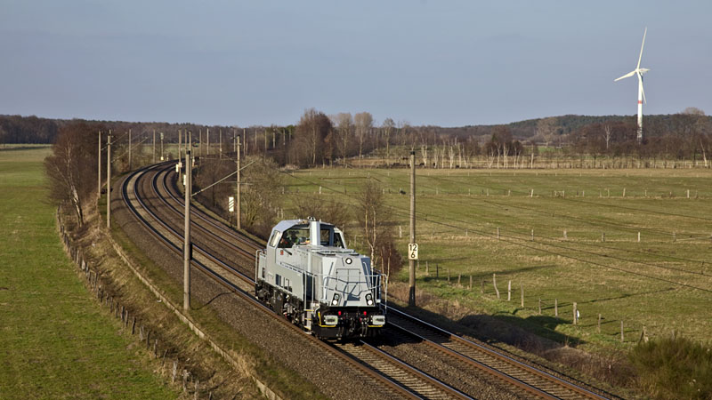 | Eine frische VOITH GRAVITA auf Auslieferungsfahrt – die 261 307-3. Ramelsloh, 29. März 2011 |