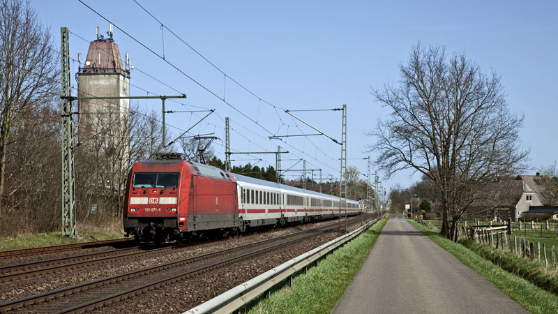 | Einen InterCity hatte die dreckige 101 071-9 am Haken. Brokstedt, 9. April 2011 |