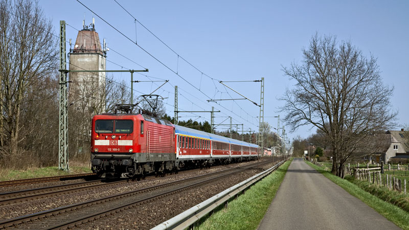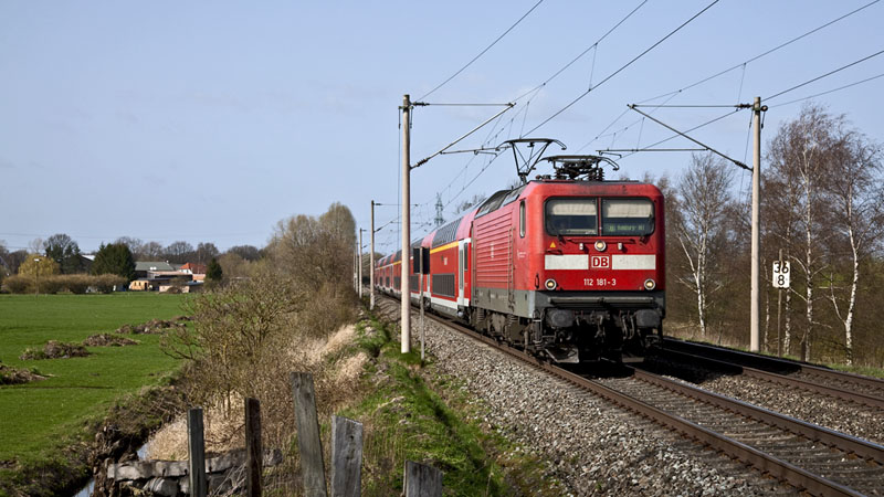 | Der schnelle "Kieler" nach Hamburg mit der 112 181-3. Horst, 9. April 2011 |