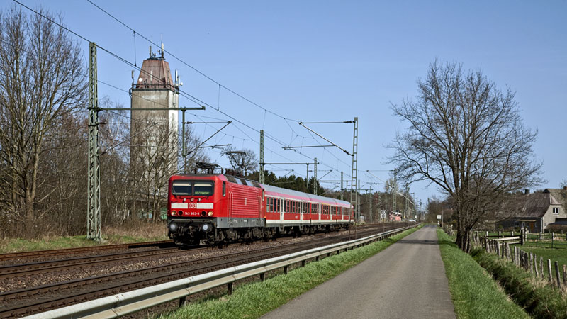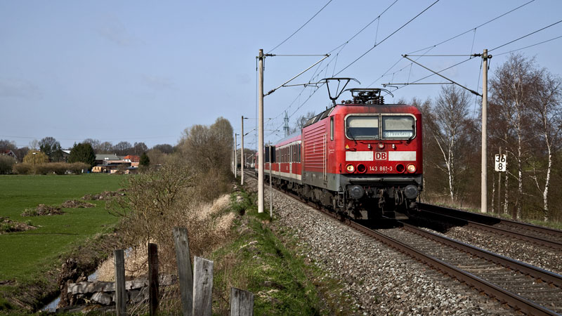 | Die nächste RegionalBahn nach Pinneberg mit der 143 861-3. Horst, 9. April 2011 |
