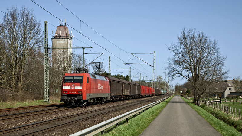 | Die 152 020-4 hatte einen rassigen gemischten Güterzug von Kiel-Meimersdorf nach Maschen zu bringen. Brokstedt, 9. April 2011 |