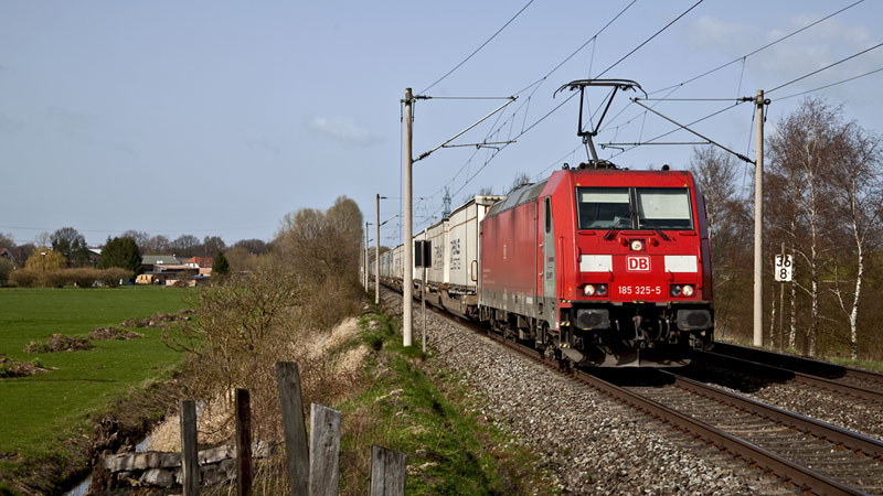 | Die 185 325-5 hatte den beeindruckenden EWALS/RHENUS-KLV-Zug am Haken. Horst, 9. April 2011 |
