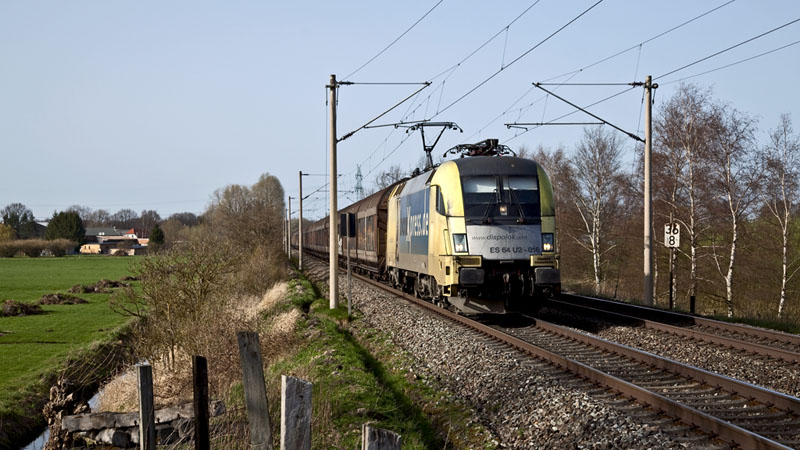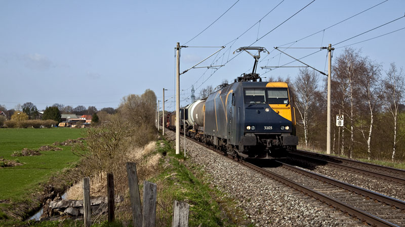 | Die starke EG 3103 mit einem schweren Güterzug von Schweden nach Maschen. Horst, 9. April 2011 |
