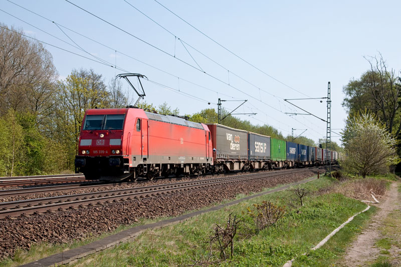 | Auch die 185 335-4 hatte einen VAN DIEREN am Haken, aber nach Norrköping. Halstenbek, 22. April 2011 |