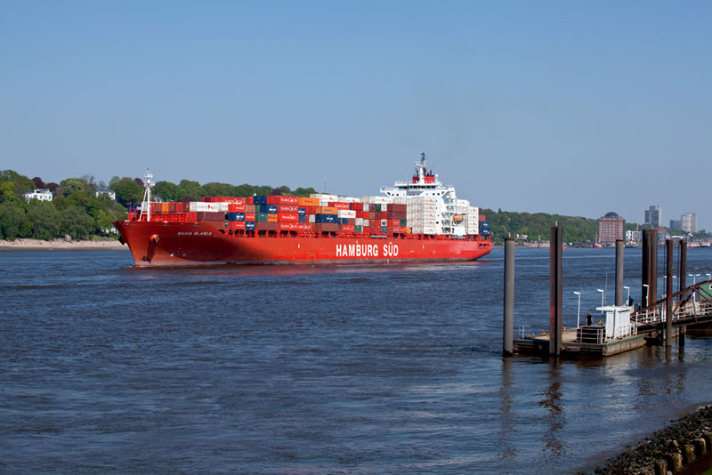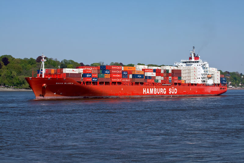 Die BAHIA BLANCA der HAMBURG SÜD beim Auslaufen aus dem Hamburger Hafen. |