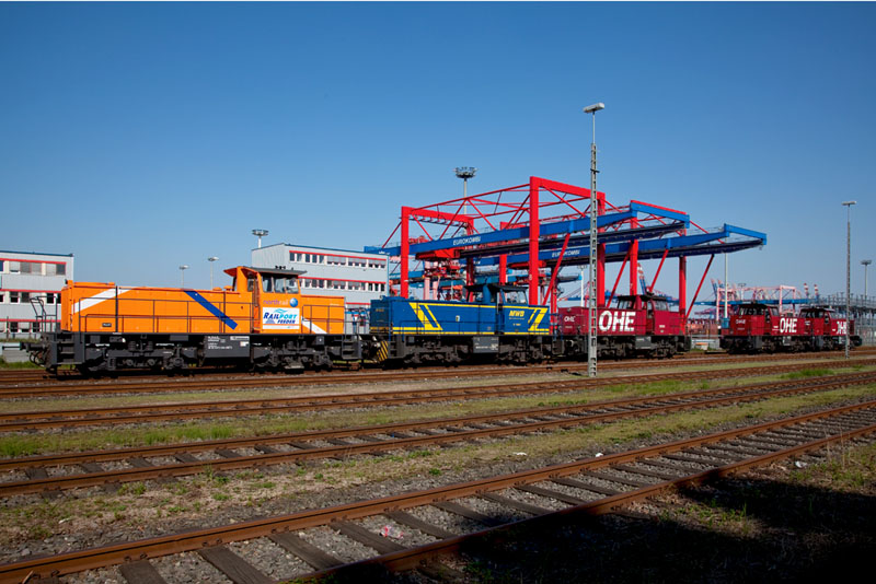 | Die "RAILPORT FEEDER" ist eine Kooperation zwischen der EVB und der Mittelweserbahn. Hamburg-Waltershof, 24. April 2011 |