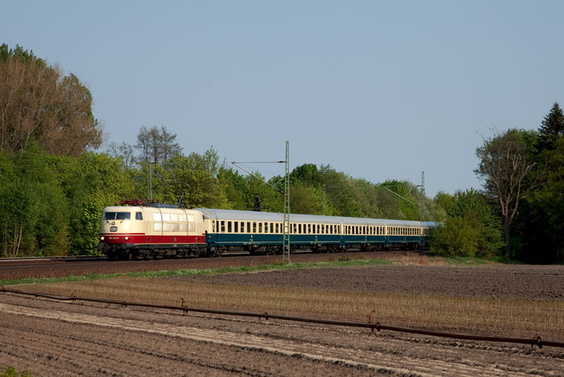 | Zuguterletzt kam der InterCity 2410 von Köln nach Flensburg mit der rüstigen 103 235-8! Halstenbek, 29. April 2011 |