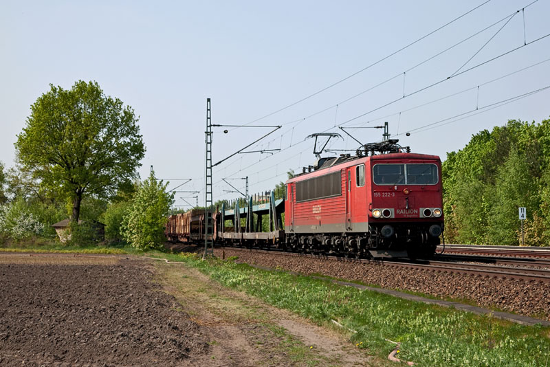 | Einen gemischten Güterzug von Kiel-Meimersdorf nach Maschen hatte die 155 222-3 am Haken. Halstenbek, 29. April 2011 |