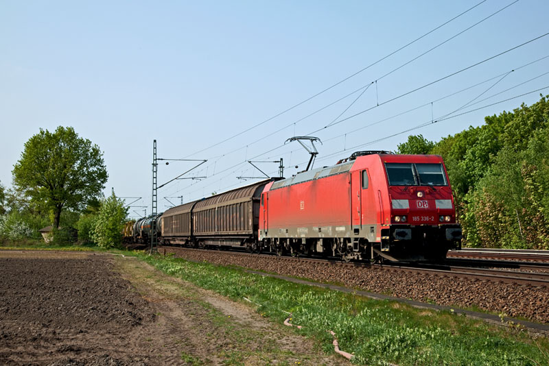 | Auch die 185 336-2 der DB Schenker Rail Danmark A/S hatte einen schweren Güterzug nach Maschen zu bringen. Halstenbek, 29. April 2011 |