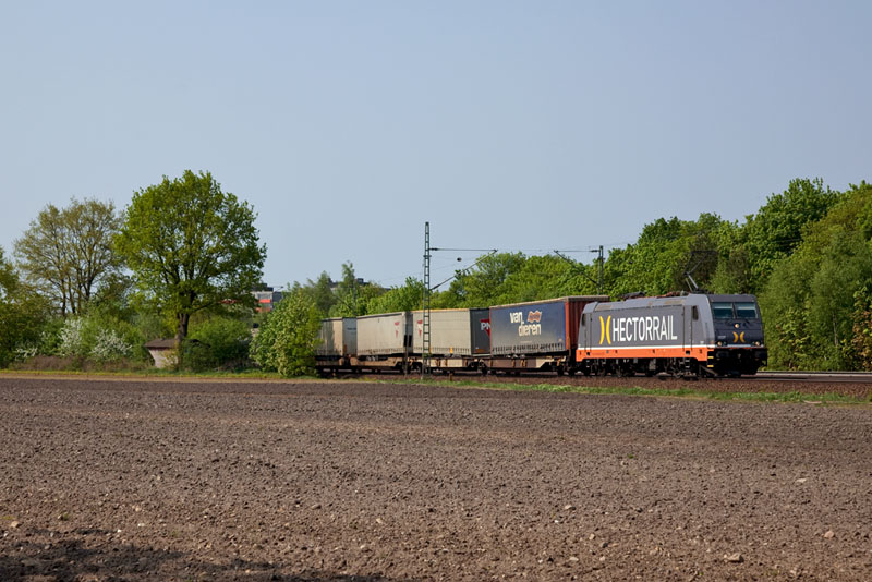 | Der "Ur-Hector"-Zug – der VAN DIEREN mit 241.009 "Moneypenny" in Richtung Wanne-Eickel. Halstenbek, 29. April 2011 |