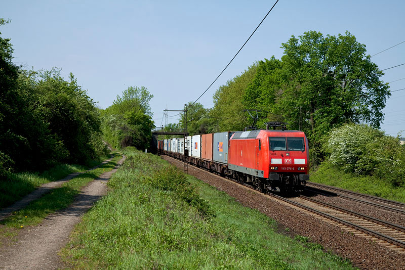| Jede Menge Container für den Hamburger Hafen mit der 145 076-6. Ahlten, 30. April 2011 |