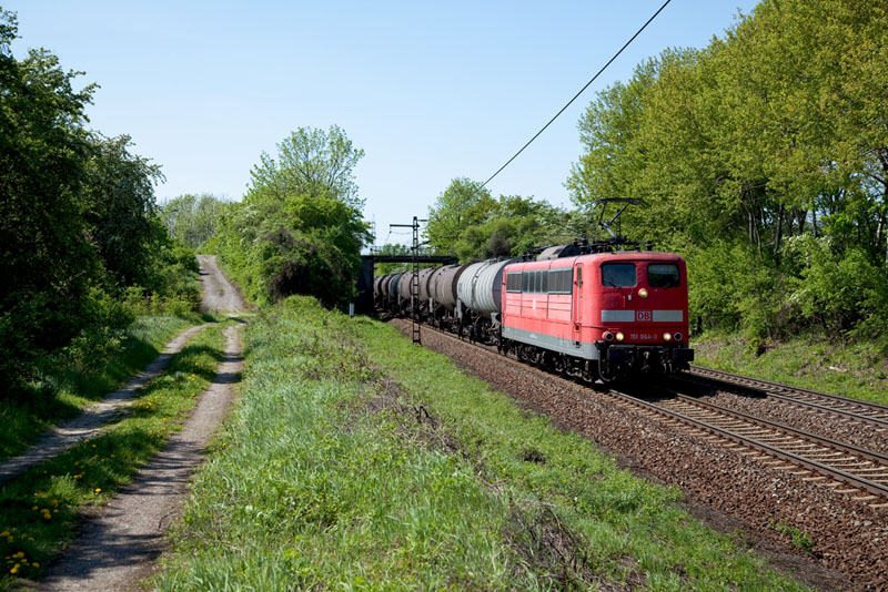 | Mit noch mehr Kesselwagen rödelte die sechsachsige 151 064-3 ostwärts. Ahlten, 30. April 2011 |
