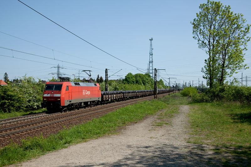 | Mit diesem schweren gemischten Güterzug fuhr die 152 017-0 west- bzw. südwärts. Ahlten, 30. April 2011 |