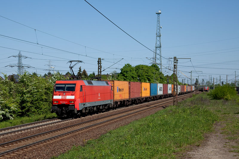 | Mit noch mehr Seekisten polterte die 152 124-4 in Richtung Hannover. Ahlten, 30. April 2011 |