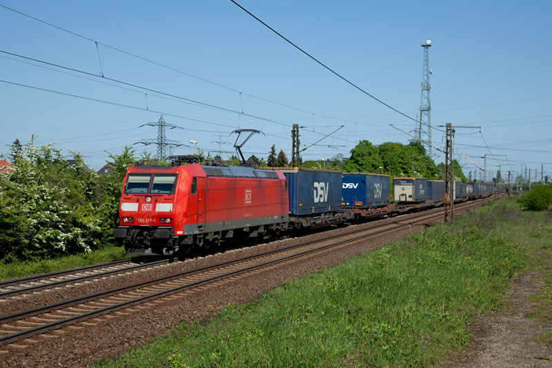 | Der KLV-Zug aus Schweden mit der 185 017-1. Ahlten, 30. April 2011 |