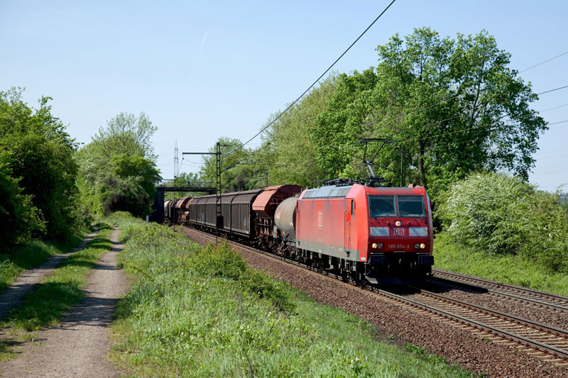 | Aus Richtung Hannover kam dieser Güterzug mit der 185 074-2. Ahlten, 30. April 2011 |