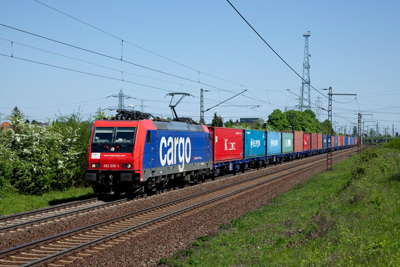 | Etliche Container brachte die 482 047-8 der SBB Cargo in Richtung Hamburg. Ahlten, 30. April 2011 |