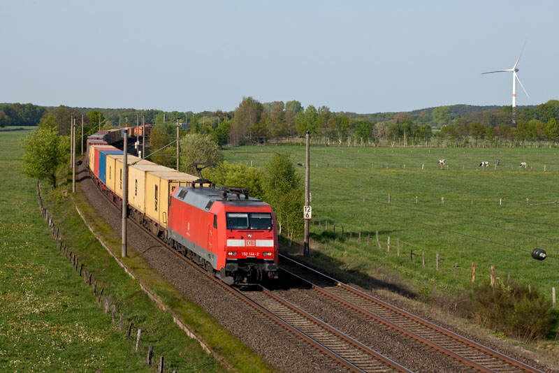 | Der nächste Containerzug aus Hamburg, diesmal mit der 152 144-2 Ramelsloh, 5. Mai 2011 |