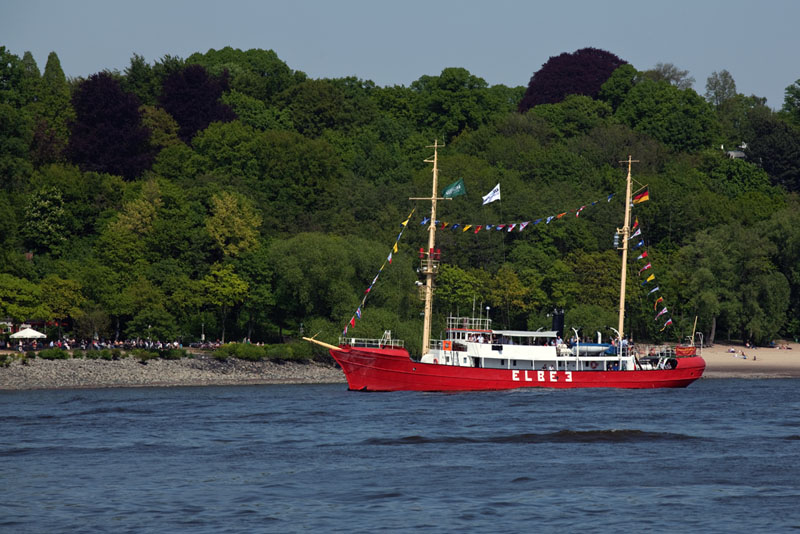| Auch das ehemalige Feuerschiff der Deutschen Bucht, die ELBE 3 lief aus. Hamburg-Waltershof, 6. Mai 2011 |