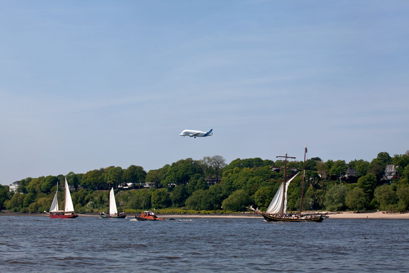 | Die BELUGA von AIRBUS SKYLINK landete zwischen all den Seglern. Hamburg-Waltershof, 6. Mai 2011 |