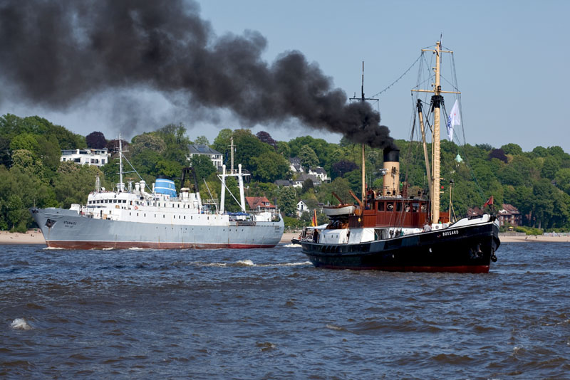 | Im Hintergrund der ehemalige DDR-Fischtrawler STUBNITZ und davor der Dampfer BUSSARD. Hamburg-Waltershof, 6. Mai 2011 |