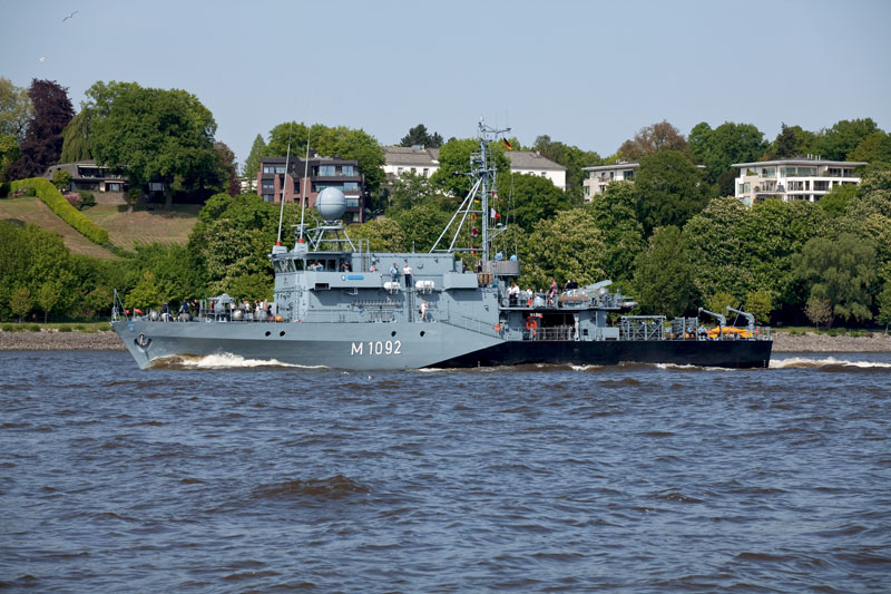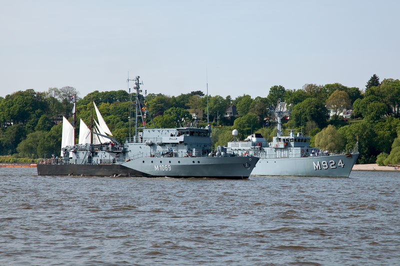 | Nun folgen die beiden Minensuchboote M 1069 WEGA (Bundesmarine) und M 924 PRIMULA (Belgien). Hamburg-Waltershof, 6. Mai 2011 |