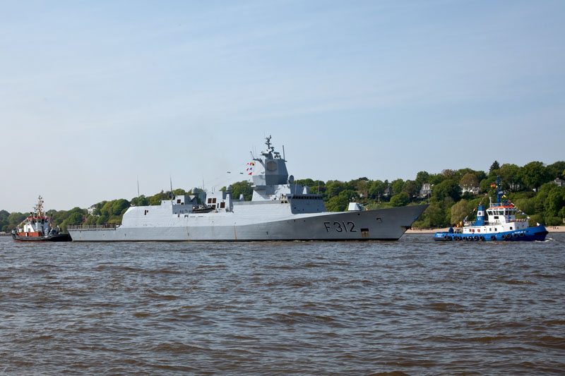 | Die norwegische Fregatte F 312 – OTTO SVERDRUP führte die Einlaufparade. Hamburg-Waltershof, 6. Mai 2011 |
