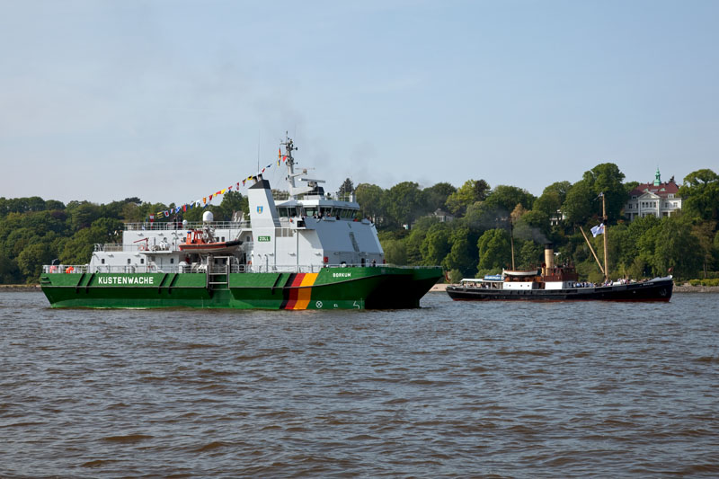 | Das sind Welten, die BORKUM – ein Pilottenderschiff der Küstenwache und die BUSSARD. Hamburg-Waltershof, 6. Mai 2011 |