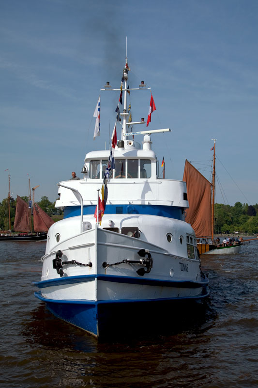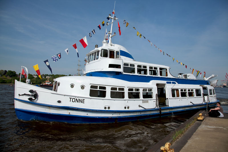 | Die ehemalige DES TONNDORF – nun als "TONNE" bei einem Privatmann unterwegs. Hamburg-Waltershof, 6. Mai 2011 |
