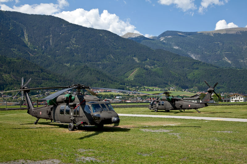 | Ein Fünftel der Österreichischen Black Hawk-Flotte auf einem Blick. Vomp (Inntal), 19. Mai 2011 |