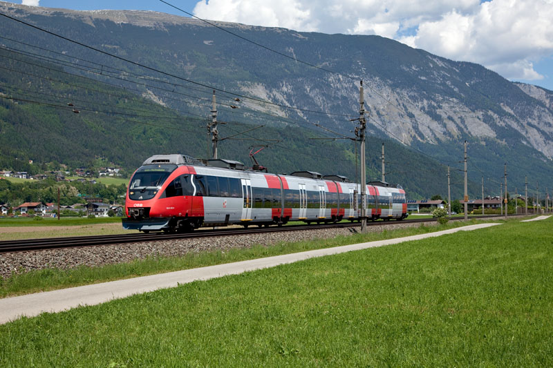 | Die S-Bahn nach Innsbruck mit dem Triebzug 4024 093. Vomp (Inntal), 19. Mai 2011 |
