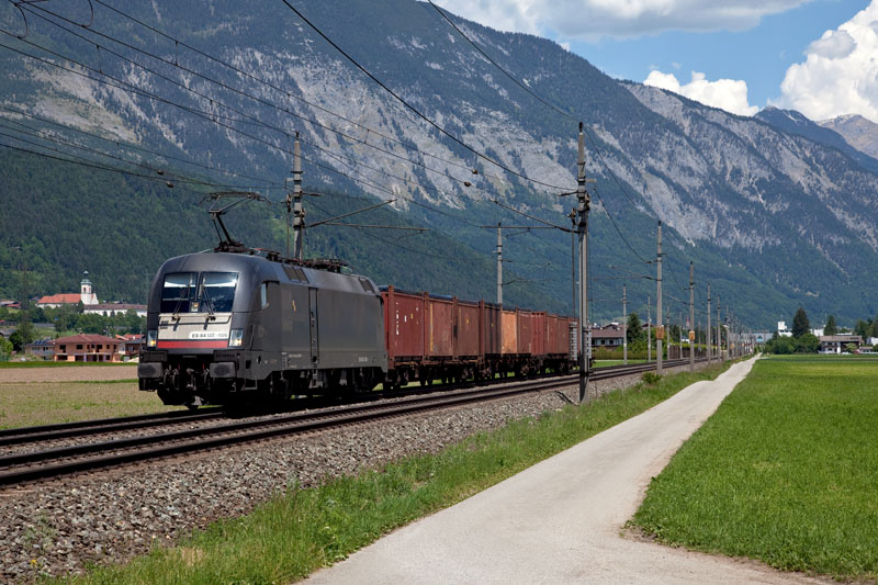 | Einen weiteren gemischten Güterzug nach Innsbruck hatte die 1016 026 am Haken. Vomp (Inntal), 19. Mai 2011 |