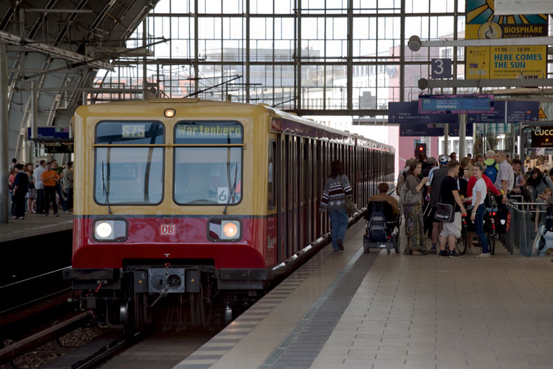 | Ein weiterer Dreiviertelzug mit dem führenden ET 485 108 auf der S75 nach Spandau. Berlin | Alexanderplatz, 17. Juni 2011 |