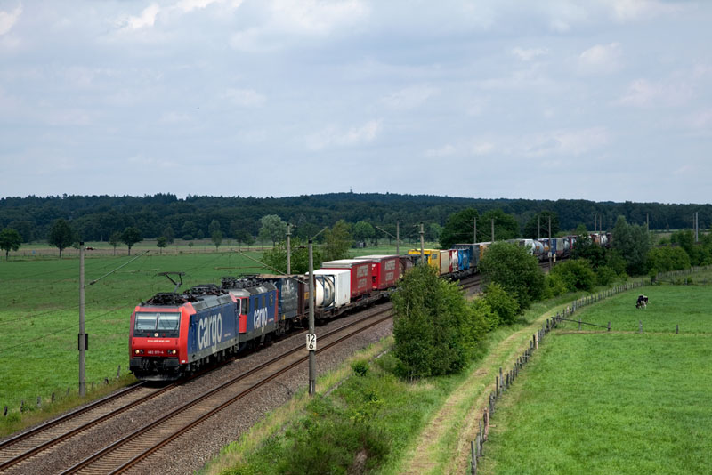 | …auf dem Weg nach Hamburg mit ihrem Containerzug. Ramelsloh, 25. Juni 2011 |