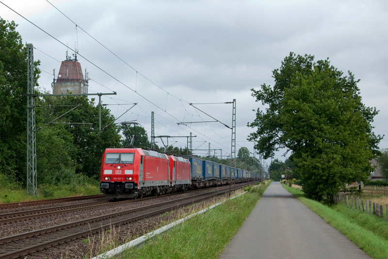 | …und brauchte die geballte Kraft zweier Loks wie 185 331-3 und 185 326-3 von DB Schenker Rail Danmark A/S! Brokstedt, 26. Juni 2011 |