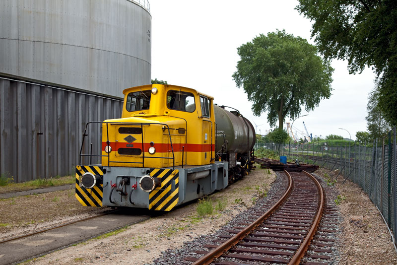 | Volle Breitseite auf die zweiachsige BOM-1, einer Orenstein&Koppel-werksdiesellok. Hamburg-Waltershof, 30. Juli 2011 |