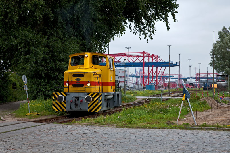 | …und passierte laut pfeifend zwei Bahnübergänge. Hamburg-Waltershof, 30. Juli 2011 |