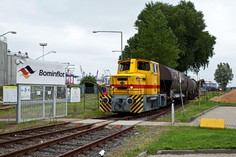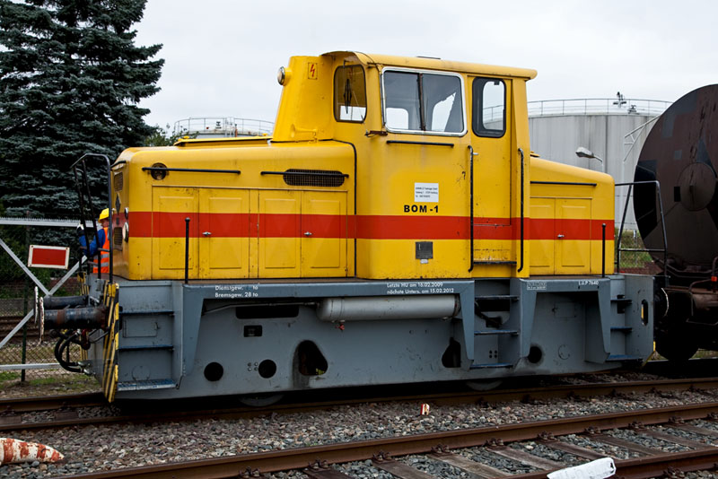 | Die kleine BOM-1 des Tanklagerbetriebes BOMINFLOT war am rangieren von Kesselwagen. Hamburg-Waltershof, 30. Juli 2011 |