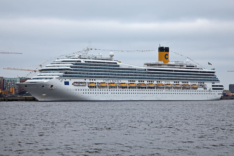 | Wieder mal ist eins der riesigen Keuzfahrer in Hamburg, die COSTA MAGICA. Hamburg-Veddel, 30. Juli 2011 |