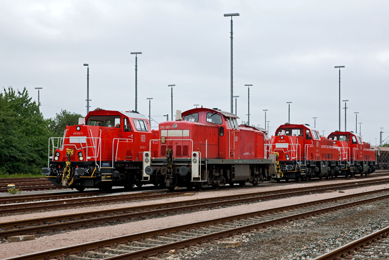 | Im Hafenrangierbahnhof Hamburg-Süd stand eine "Meute" von Rangierdieselboliden in trügerischer Eintracht… Hamburg-Veddel, 30. Juli 2011 |
